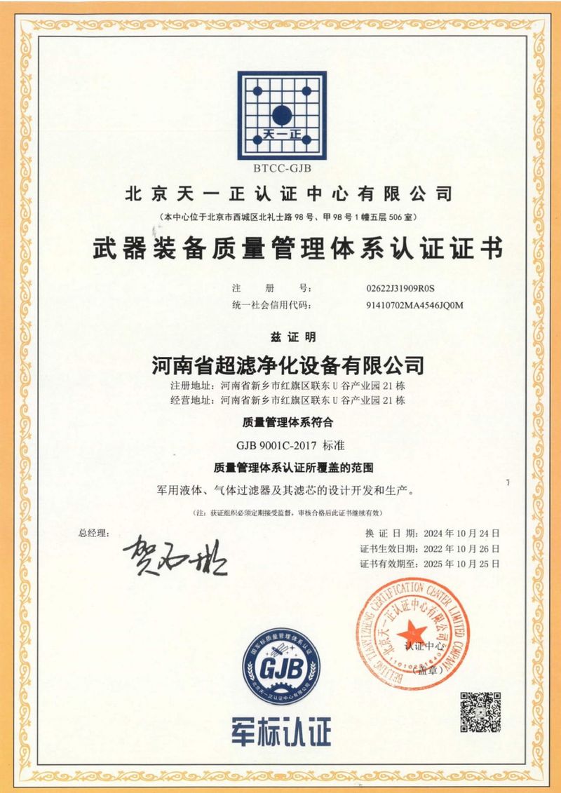 河南省千亿qy88国际官网入口净化设备有限公司成立于2018年,座落于河南省新乡市,是一家集滤芯、过滤器、成套过滤装置及液压附件、液压泵、特种阀等产品的研发、生产、销售、技术服务为一体的综合性企业。主要服务于国内的航空、航天、船舶、核工业、煤碳、石油化工、电力、工程机械等行业。公司拥有2项发明专 利(ZL 2024 1 0110610.0 、ZL 20243 1 1806105.1)和6项实用新型专 利(ZL 202220053751.X、ZL202222784245.0、ZL202222578329.9、ZL202222630720.9、ZL202222864294.5、ZL202222712176.2),研发人员的不懈努力,锐意进取,加上经验丰富的技工与生产设备的结合,更好的产品技术使得质量有了更可靠的保障,保证了产品的及时交付,增强了企业的核心竞争能力。公司是过滤与分离行业协会会员单位,秉承“以质量求生存,靠创新谋发展”的指导思想,始终把产品质量放在前位,不断进取,持续改进,精益求精,按照ISO9001标准建立了一套完善的质量保证管理体系,2022年通过了国 军标《GJB9001C-2017》质量体系认证,使公司的产品质量得到提升,也将规范公司的管理,为客户提供更多的、稳定的高品质产品。2023年,公司获得了高新 技术企业荣誉称号。2024年,获批成立新乡市航天精密流体元件技术工程研究中心。